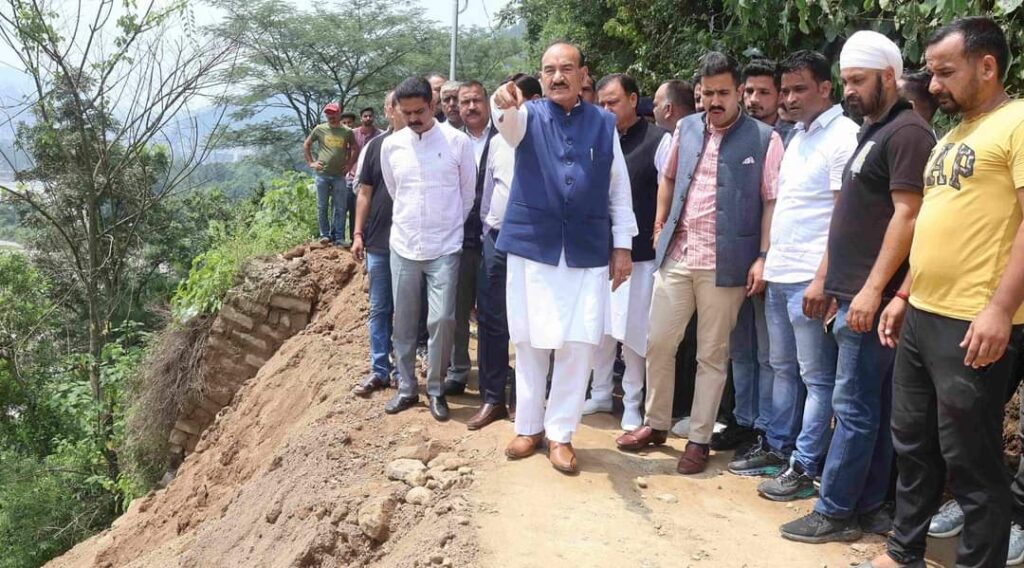लोक निर्माण मंत्री ने मंडी में भूस्खलन से क्षतिग्रस्त बाड़ी गुमाणू सड़क का निरीक्षण किया