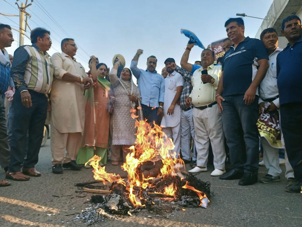 पंजाब कांग्रेस नेतृत्व ने जिला मुख्यालय में प्रधानमंत्री मोदी का पुतला फूंका