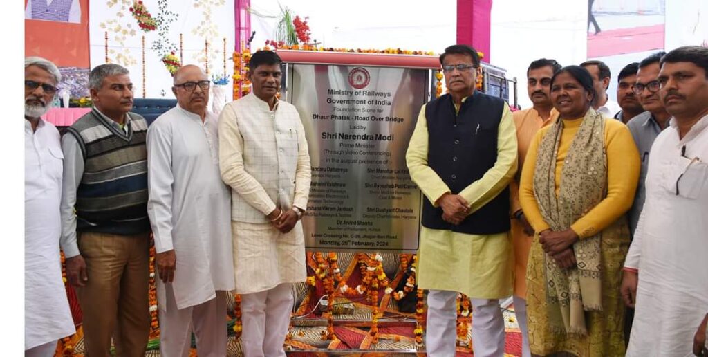 झज्जर, देश के प्रधानमंत्री नरेंद्र मोदी ने अमृत भारत स्टेशन योजना के अंतर्गत वर्चुअल माध्यम से सोमवार को 41 हजार करोड़ रुपए की लागत से देशभर में 554 रेलवे स्टेशनों के पुर्नविकास और 1500 आरओबी – आरयूबी का उद्घाटन और शिलान्यास किया। इन परियोजनाओं में जिला झज्जर वासियों को तीन आरओबी की सौगात मिली। जिनमें सांखोल रोड व रोहद-देहकोरा रोड और झज्जर-बेरी मार्ग पर धौड़ फाटक के समीप बनने वाले आरओबी का शिलान्यास हुआ। स्थानीय स्तर पर झज्जर स्थित धौड़़ फाटक के समीप शिलान्यास कार्यक्रम में भाजपा के राष्ट्रीय सचिव औमप्रकाश धनखड़ की गरिमामयी उपस्थिति में कार्यक्रम आयोजित हुआ।