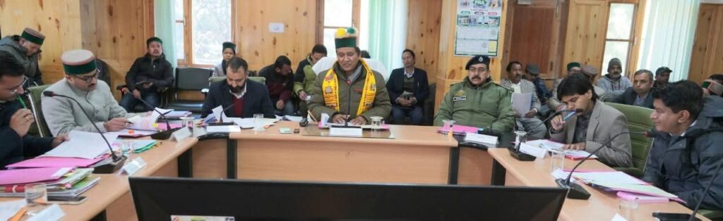रिकांगपिओ , राजस्व, बागवानी, जनजातीय विकास एवं जन शिकायत निवारण मंत्री जगत सिंह नेगी ने आज किन्नौर जिला के रिकांग पिओ स्थित एकीकृत जनजातीय विकास परियोजना भवन के सम्मेलन कक्ष में जिला स्तरीय योजना, विकास एवं 20 सूत्रीय कार्यक्रम समिति की बैठक की अध्यक्षता की तथा अधिकारियों को जिला में लंबित विकास कार्यों व शिकायतों के निवारण कार्यों को समय पर पूर्ण करने के निर्देश दिए ताकि लोगों को योजनाओं का लाभ प्राप्त हो सके।