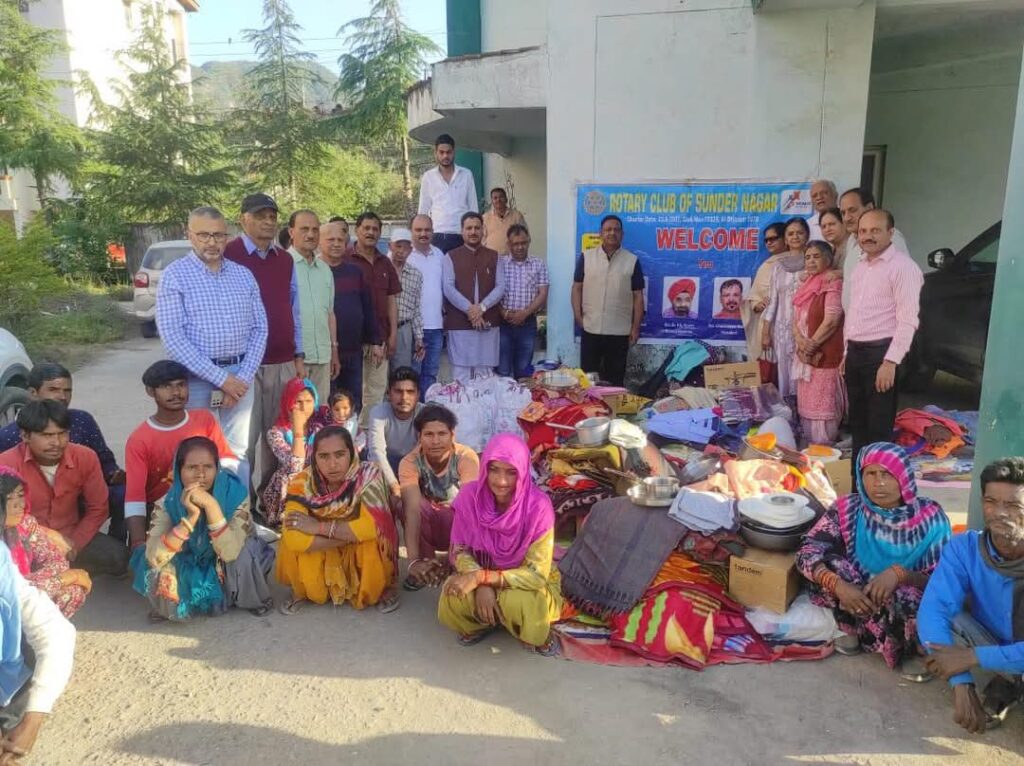 सुन्दरनगर में हुई आगजनी से पीड़ित प्रवासी परिवारों की मदद को रोटरी क्लब आया आगे