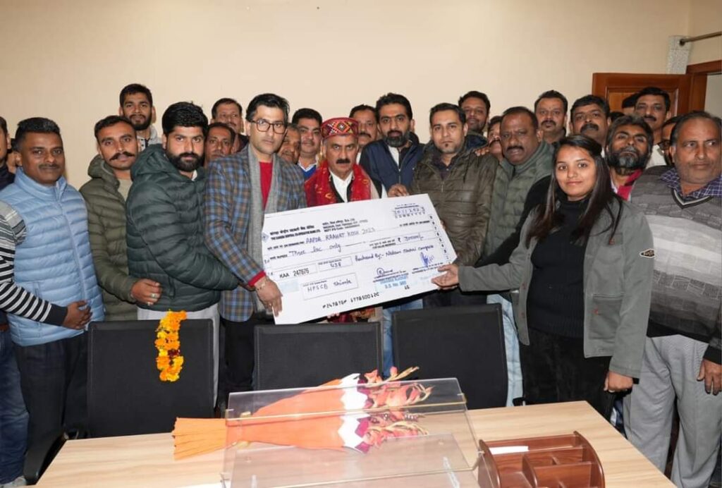 himachal pradesh शमी सोनी ने आपदा राहत कोष के लिए 3.31 लाख रुपये का अंशदान मुख्यमंत्री को भेंट किया 2 years ago shivalik-admin नादौन शहरी कॉंग्रेस की ओर से शमी सोनी ने आपदा राहत कोष के लिए आज धर्मशाला में 3.31 लाख रुपये का अंशदान मुख्यमंत्री ठाकुर सुखविंदर सिंह सुक्खू को भेंट किया। Post navigation Previous एसडीएम ने मिनी सचिवालय में स्थापित ईवीएम पर की मॉक पॉलNext राष्ट्रीय अनुसूचित जाति आयोग ने की केंद्र की योजनाओं की समीक्षा