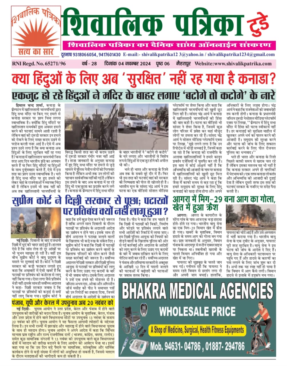 national Shivalik Patrika Evening 04 Nov. 24 1 year ago shivalik-admin Post navigation Previous प्रदूषण पर पाकिस्तान के झूठे आरोपों की खुली पोलNext पंजाब, यूपी और केरल में उपचुनाव अब 20 नवंबर को