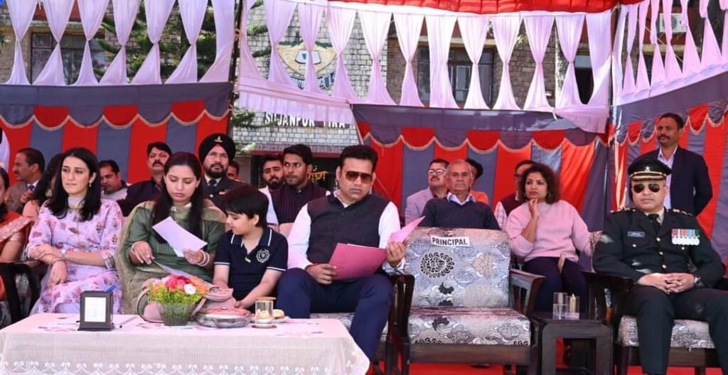सुजानपुर 02 नवंबर। सैनिक स्कूल सुजानपुर टीहरा का 46वां स्थापना दिवस एवं वार्षिक उत्सव वीरवार को धूमधाम से मनाया गया, जिसमें हिमाचल प्रदेश पर्यटन विकास निगम के अध्यक्ष आरएस बाली ने मुख्य अतिथि के रूप में शिरकत की और मेधावी विद्यार्थियों को पुरस्कार वितरित किए।