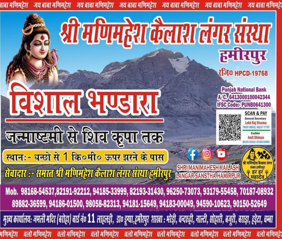 मणिमहेश में जन्माष्टमी से राधा अष्टमी तक इस वर्ष भी लगेगा लंगर