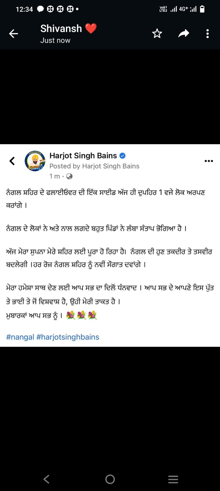 सुधीर शर्मा, नंगल डैम पर बने फ्लावर पर कुछ ही देर में वाहनों का आवागमन शुरू हो सकेगा। इसकी जानकारी हरजोत सिंह बैंस कैबिनेट मंत्री एवं स्थानीय विधायक ने अपने सोशल मीडिया पेज पर दी। हरजोत बैंस ने लिखा है ‘नंगल शहर के फ्लाईओवर की एक साइड आज ही दोपहर 1:00 बजे लोकार्पित करेंगे। नंगल के लोगों व साथ लगता बहुत सारे गावों के लाखों लोगों ने लंबा संताप झेला है। आज मेरा सपना मेरे शहर के लिए पूरा हो रहा है। नंगल की अब तस्वीर व तकदीर बदलेगी। हर रोज नंगल शहर को नई सौगात देंगे। मेरा हमेशा साथ देने के लिए आप सबका दिल से धन्यवाद। आप सब का अपने इस बेटे व भाई पर जो विश्वास है, वह मेरी ताकत है। आप सबको शुभकामनाएं।’