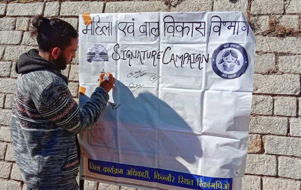 बेटी बचाओ बेटी पढ़ाओ योजना के तहत किन्नौर के रिकांग पिओ में आयोजित किया गया शपथ ग्रहण समारोह व हस्ताक्षर अभियान