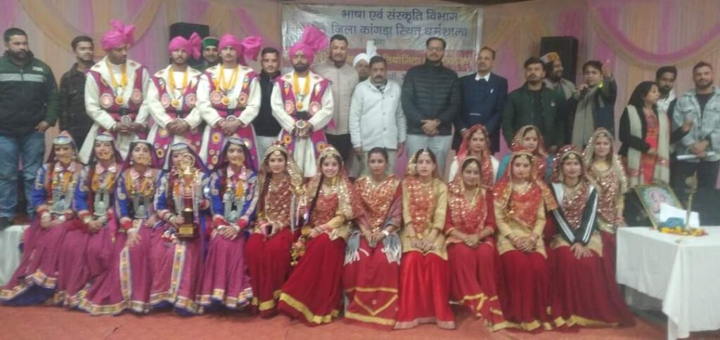 धर्मशाला , भाषा-संस्कृति विभाग जिला कांगड़ा द्वारा जिला स्तरीय लोकनृत्य प्रतियोगिता कम्यूनिटि हाल कोतवाली बाजार धर्मशाला में आयोजित करवाई गई जिसमें जिला से लगभग 11 सांस्कृतिक दलांे ने अपनी प्रस्तुतियां दी। कार्यक्रम का शुभारंभ दीप प्रज्जवलित करके किया गया। कार्यक्रम में सौरभ जसल अतिरिक्त उपायुक्त जिला कांगडा बतौर मुख्यतिथि के रूप में अपनी उपस्थिति दी। कार्यक्रम में विभिन्न सांस्कृतिक दलों ने विभिन्न -विभिन्न क्षेत्रों का लोकनृत्य प्रस्तुत किया। इस प्रतियोगिता में वंशिका कला मंच सुक्कड ने प्रथम स्थान व धौलाधार सांस्कृतिक युवा मंच दाडनू ने द्वितीय तथा कांगडा लोक कला मंच धर्मशाला ने तृतीय स्थान प्राप्त किया। प्रतियोगिता में मुनीश कुमार, अक्षय कुमार तथा नितेश धीमान ने निर्णायक की भूमिका निभाई। चन्दभारद्वाज ने मंच संचालक के रूप में अपना योगदान दिया। कार्यक्रम के अन्त में जिला भाषा अधिकारी अमित गुलेरी ने प्रतियोगिता में आए हुए सभी कलाकारों तथा उपस्थित सभी गणमान्य का आभार व्यक्त किया। इस कार्यक्रम में विभाग से विनोद कुमार व आत्मा राम ने भी अपना महत्वपूर्ण योगदान दिया।
