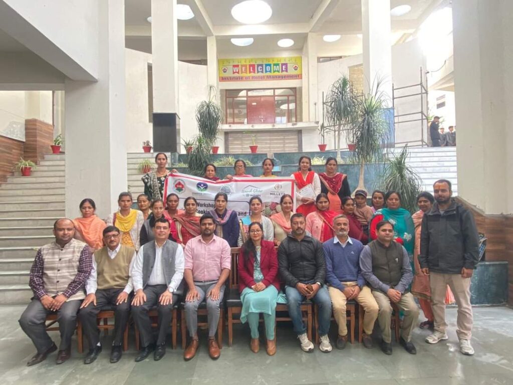 बाजरा, रागी और अन्य मोटे अनाज से बनने वाले विभिन्न पौष्टिक व्यंजनों के बारे में महिलाओं को अवगत करवाने एवं प्रशिक्षित करने के लिए होटल प्रबंधन संस्थान (आईएचएम) हमीरपुर में छह दिवसीय प्रशिक्षण कोर्स आयोजित किया गया, जिसमें विकास खंड सुजानपुर की ग्राम पंचायत दाड़ला की 20 महिलाओं ने भाग लिया। इस कोर्स के दौरान प्रतिभागियों ने रागी रोटी, बाजरा मोमो, बाजरा खिचड़ी, रागी आटे की कचौरी, अंकुरित दालों एवं मोटे अनाज के स्प्रिंग रोल इत्यादि व्यंजन बनाना सीखे।