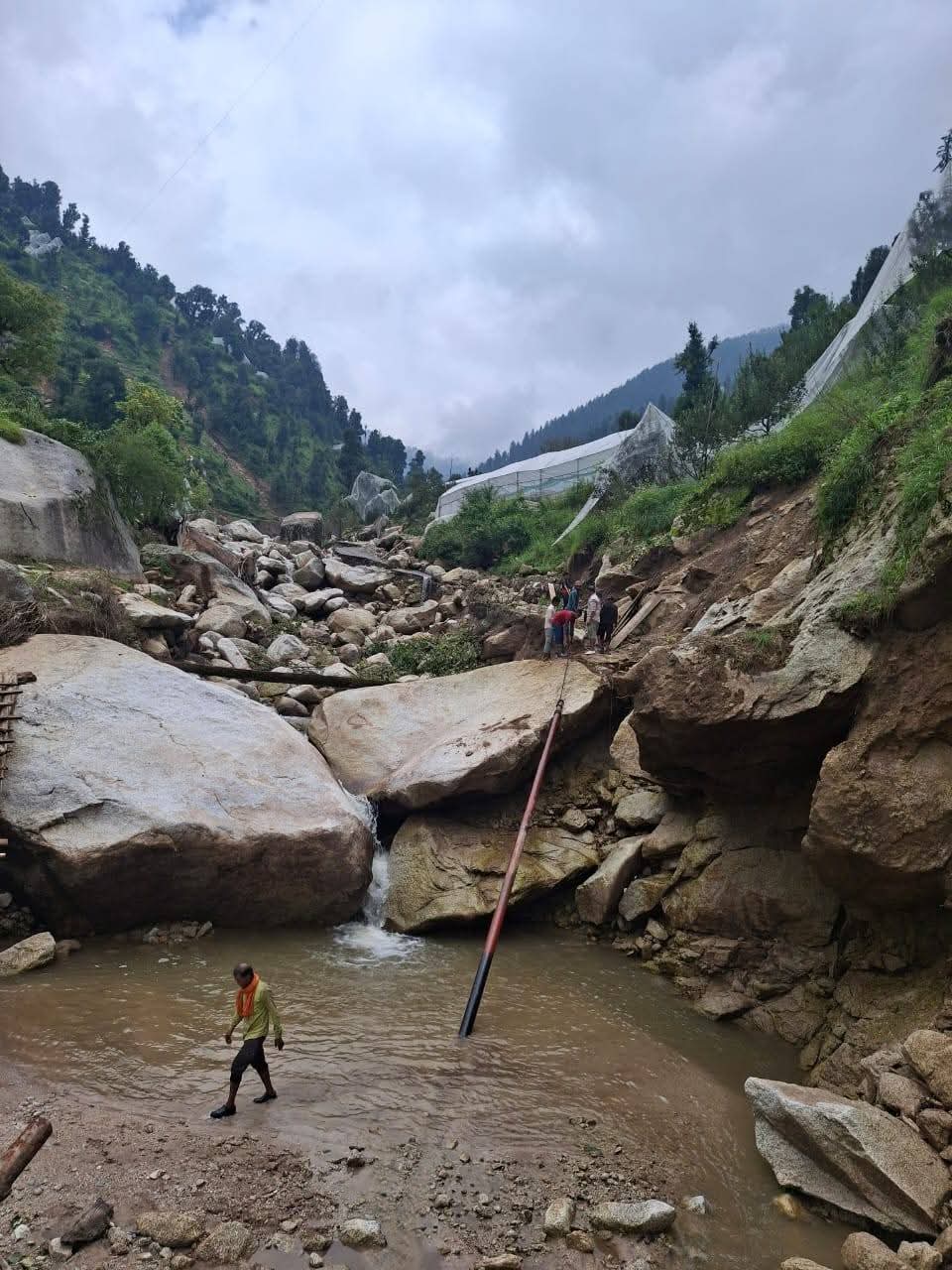 मंडी, आपदा प्रभावित क्षेत्रों में विद्युत आपूर्ति बहाल करने के लिए हिमाचल प्रदेश राज्य विद्युत बोर्ड द्वारा कठिन परिस्थितियों में भी लगातार कार्य किया जा रहा है। सराज क्षेत्र की ग्राम पंचायत पखरेर के अंतर्गत आने वाले गांव भराड़ में विद्युत पोल रस्सियों से खींचकर पहुंचाए जा रहे हैं, क्योंकि गांव तक न सड़क बची है और न ही पैदल रास्ता।