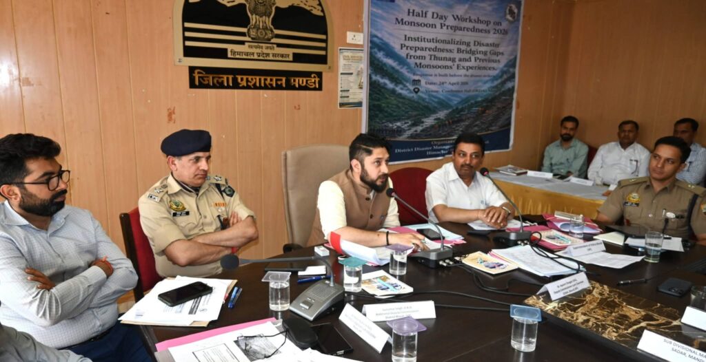 मंडी,आगामी दक्षिण-पश्चिम मानसून-2026 की तैयारी, रोकथाम और शमन उपायों पर गत शुक्रवार देर सायं जिला आपदा प्रबंधन प्राधिकरण के सौजन्य से एक महत्वपूर्ण कार्यशाला का आयोजन किया गया, जिसकी अध्यक्षता उपायुक्त एवं प्राधिकरण के अध्यक्ष अपूर्व देवगन ने की।