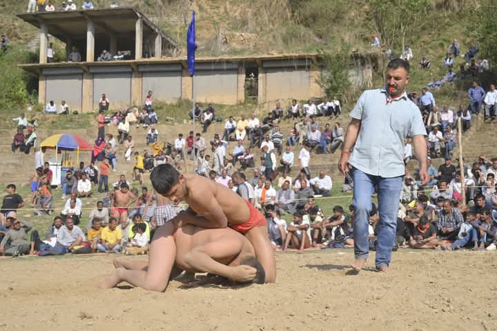 राज्य स्तरीय नलवाड़ किसान मेला सुंदरनगर में कुश्ती प्रतियोगिता शुरू