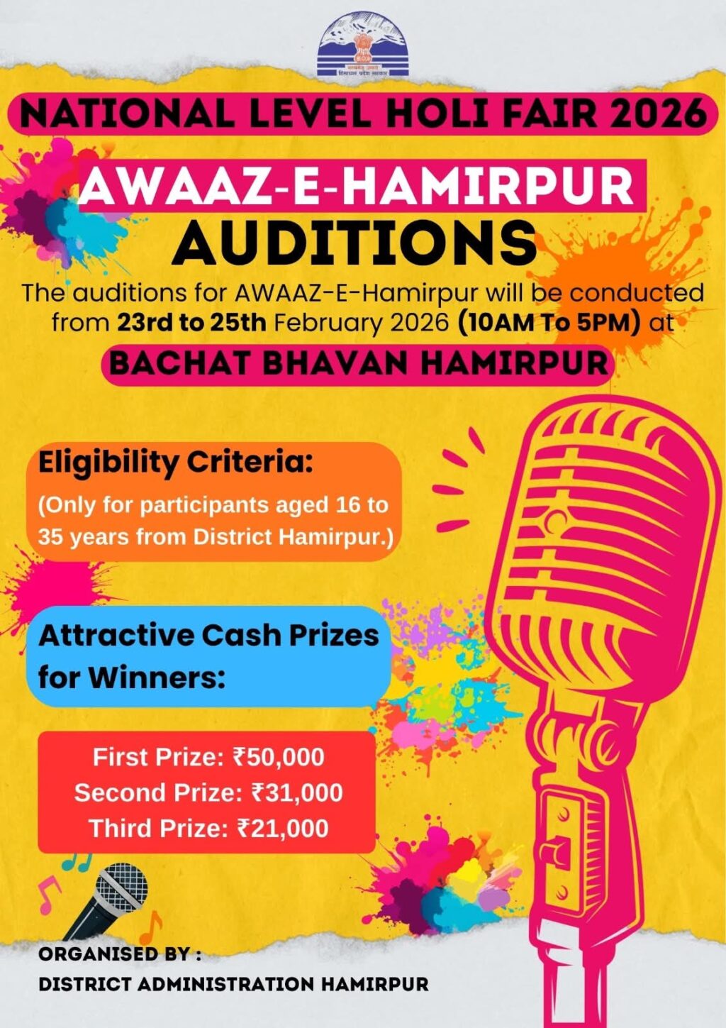 आवाज-ए-हमीरपुर’ प्रतियोगिता में युवा गायकों को मिलेगा मंच